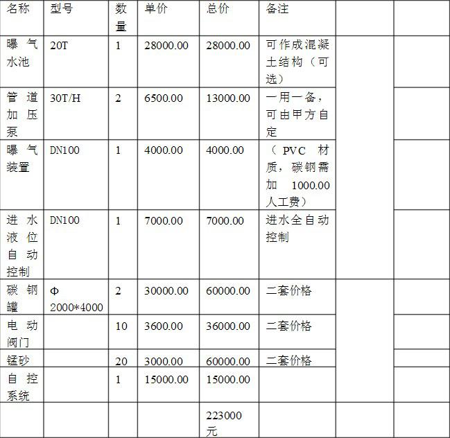工藝過(guò)程中,曝氣裝置中的曝氣池可選用混凝土結(jié)構(gòu)(由甲方制作),也可采用玻璃鋼結(jié)構(gòu)。