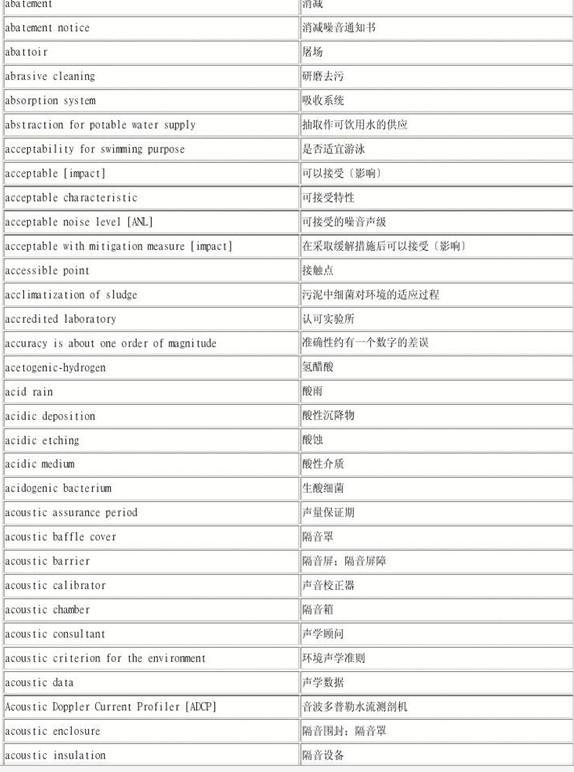 水處理給排水英語(yǔ)專業(yè)詞匯表