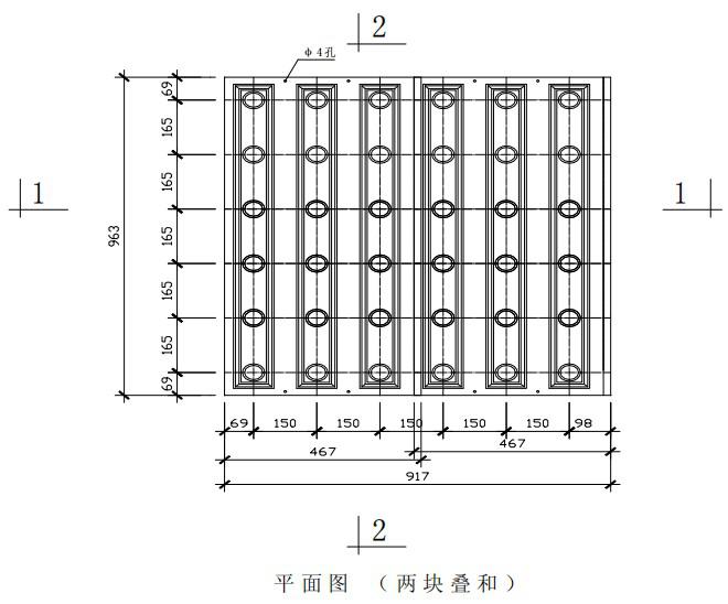 注:孔距尺寸為標準尺寸,必要時可根據(jù)濾池設計要求,采用特殊模板確定。